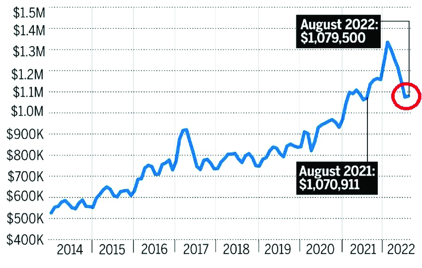 آنچه در مطالعه بازار مسکن مسلم است این است که تعداد معاملات و بهای مسکن از ماه فوریه – که در حداکثر میزان یا در قله قرار داشت – بهصورت کلی کمتر شده است. اما گاه در این روند نزولی اندکی افتوخیز وجود دارد. به همین دلیل است که بهعنوان مثال در بازار تورنتو دادهها و آمار کمی مردم را گیج کرده است. با وجود کاهش قیمت متوسط ملک از ماه فوریه، در برخی از مناطق تورنتو قیمت ملک تا حدود یک درصد افزایش یافته است، درحالیکه قیمت متوسط خانه و تعداد معاملات رو به کاهش است. در ماه اوت تعداد معاملات نسبت به سال گذشته به حدود پنج هزار و ششصد عدد رسید که نسبت به مقدار مشابه سال گذشته حدود ۳۴ درصد و نسبت به قله بازار مسکن یعنی ماه فوریه حدود ۴۸ درصد کمتر است. به همین نسبت نیز قیمت متوسط ملک در تورنتو نیز نسبت به ماه فوریه حدود ۱۸ درصد کمتر است.