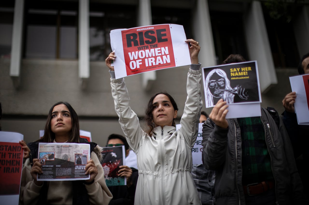 آنها در این تجمع نام مهسا امینی را صدا زدند و با خواندن سرودای ایرانای مرز پر گوهر و سر دادن شعارهایی علیه مقامهای جمهوری اسلامی و همچنین «ما همه مهسا هستیم، بجنگ تا بجنگیم» اعتراض شدید خودشان را نسبت به سرکوب هموطنان در ایران توسط نیروهای امنیتی، نظامی و شبه نظامی اعلام کردند. آنها همچنین مانند مردم ایران بارها فریاد زدند: «جمهوری اسلامی نمیخوایم نمیخوایم.»
