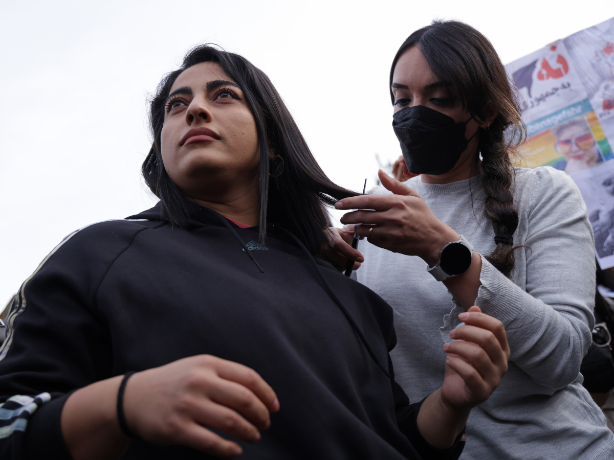 تجمع دیگر این روز در ساسکاتون بود و زنان در اعتراض به کشته شدن مهسا امینی موهای خود را در ملاء عام کوتاه کردند.