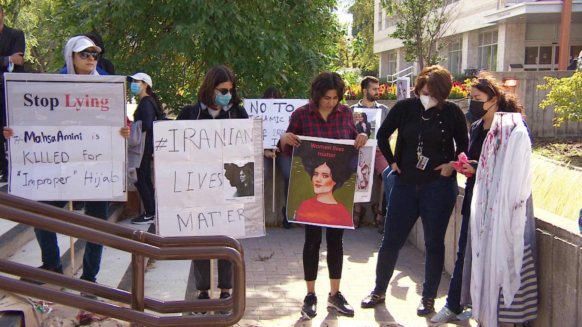 در این روز تعداد قابل توجهی از ایرانیان تورنتو با تجمع مقابل ساختمان مرکزی سی بیسی به قتل «مهسا امینی» توسط گشت ارشاد جمهوری اسلامی اعتراض کردند. در این تجمع مهسا به نمادی برای همبستگی گروههای مختلف تبدیل شده بود.