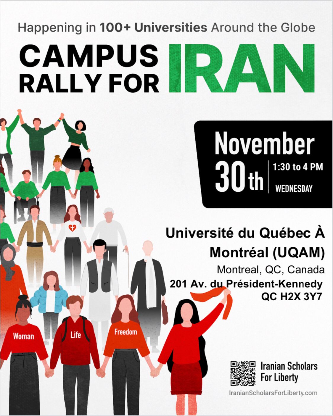 به گزارش هفته، دانشجویان ایرانی دانشگاه یوکم همزمان با سایر دانشگاهیان سراسر جهان و در کنار دانشجویان ایرانی مونترال در روز چهارشنبه ۳۰ نوامبر از ساعت ۱۳:۳۰ تا ۱۶ در ساختمان این دانشگاه تجمع میکنند.