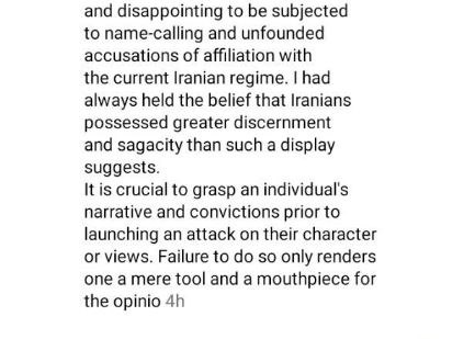 از طرف صفحه آقای الکس هادی تقی که تیک آبی دارد و نشان میدهد صفحه واقعی ایشان است نیز پیامی درباره این گزارش به زبان انگلیسی زیر پست هفته منتشر شد که شما این کامنت را در اسلایدهای دوم و سوم میبینید.
