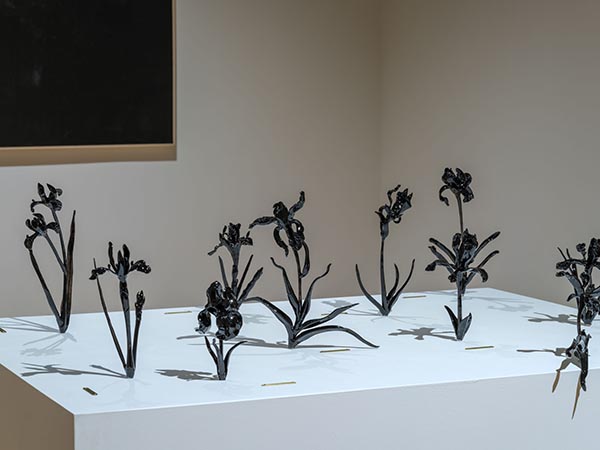 اطراف سر، ده گل شیشه‌ای از گونه‌ی FritillariaImperialis قرار دارد. هر گل، به ارتفاع حدود یک متر، در اندازه‌ی طبیعی و با شیشه‌ی سیاه ساخته شده است. این گونه‌ی بومی که با نام لاله‌ی واژگون می‌شناسیم، یکی از قدیمی‌ترین گیاهان تزئینی است که در دهه‌ی ۱۵۷۰ به اروپا برده شد. ظاهر عجیب و واژگون این گونه‌ی گل، ارتباط عمیق تاریخی و اسطوره‌ای با فرهنگ ایرانی دارد و به اشک ریختن این گیاه در عزای رفتگان تعبیر می‌شده است.