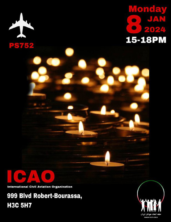 گروه حلقه اتحاد جوانان ایران در مونترال، همزمان با سالروز سرنگونی هواپیمای پیاس۷۵۲، فراخوانی برای تجمع در برابر مقر ایکائو داده است.
