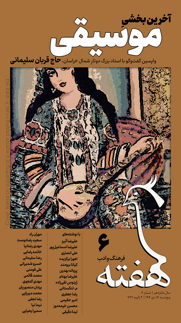 نخستین شماره هفته‌ی فرهنگ و ادب در سال نو میلادی با موضوع موسیقی منتشر شد. آخرین مصاحبه با حاج قربان سلیمانی، چند روز پیش از درگذشت او، تحت عنوان «آخرین بخشیِ موسیقی؛ واپسین گفت‌وگو با استاد بزرگ دوتارِ شمال خراسان، حاج قربان سلیمانی» مطلب روی جلد این شماره است.
