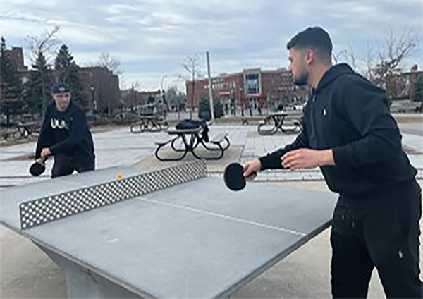 احمدی لاموشی ۲۹ ساله و دوستش محمد صدقیانی ۲۷ ساله در پارک پینگ‌پنگ بازی می‌کردند. آقای لاموشی می‌گوید ما معمولاً تابستان‌ها برای بازی به اینجا می‌آییم اما وقتی دیدیم هوا ملایم است، فرصت را مناسب دیدیم و به پارک آمدیم.