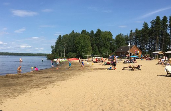 این ساحل 15 کیلومتری روبروی دریاچه سن-ژان قرار دارد. علاوه بر شنا تحت نظر غریق نجات، امکان قایق‌رانی یا کایاک سواری هم مهیاست.