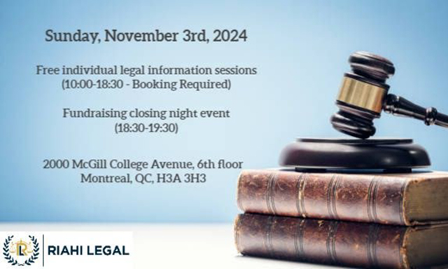 این جلسات توسط خانم نیوشا ریاحی، وکیل رسمی دادگستری در کبک، مسلط به زبانهای فارسی، انگلیسی و فرانسوی و دیگر همکار ما خانم سانگیتا جیسلان، وکیل رسمی دادگستری در کبک، مسلط به زبانهای انگلیسی و فرانسه در زمینههای حقوق خانواده حقوق تجاری و حقوق مدنی برگزار میگردد.