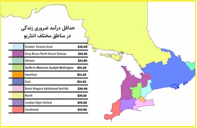 این بیش از ۱.۵ برابر حداقل دستمزد ساعتی در انتاریو است که از اول اکتبر ۱۷.۲۰ دلار تعیین شده. با این حال، حتی در مناطق ارزانتر، حداقل دستمزد برای پوشش هزینههای جاری زندگی کافی نیست.