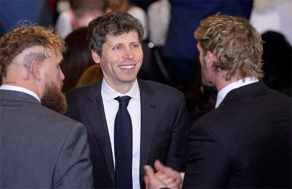 سام آلتمن، مدیر عامل OpenAI، با بوکسور جیک پل (سمت چپ) و کشتی گیر لوگان پل صحبت میکند. /