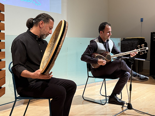 رضا فاتح، نوازنده و استاد دف در تورنتو، در اجرای موسیقی ایرانی همراهی کرد.