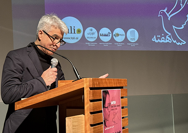 در پایان، خسرو شمیرانی، مدیر رسانهی هفته کانادا، برگزارکننده جایزه داستان کوتاه هفته، پشت تریبون قرار گرفت.