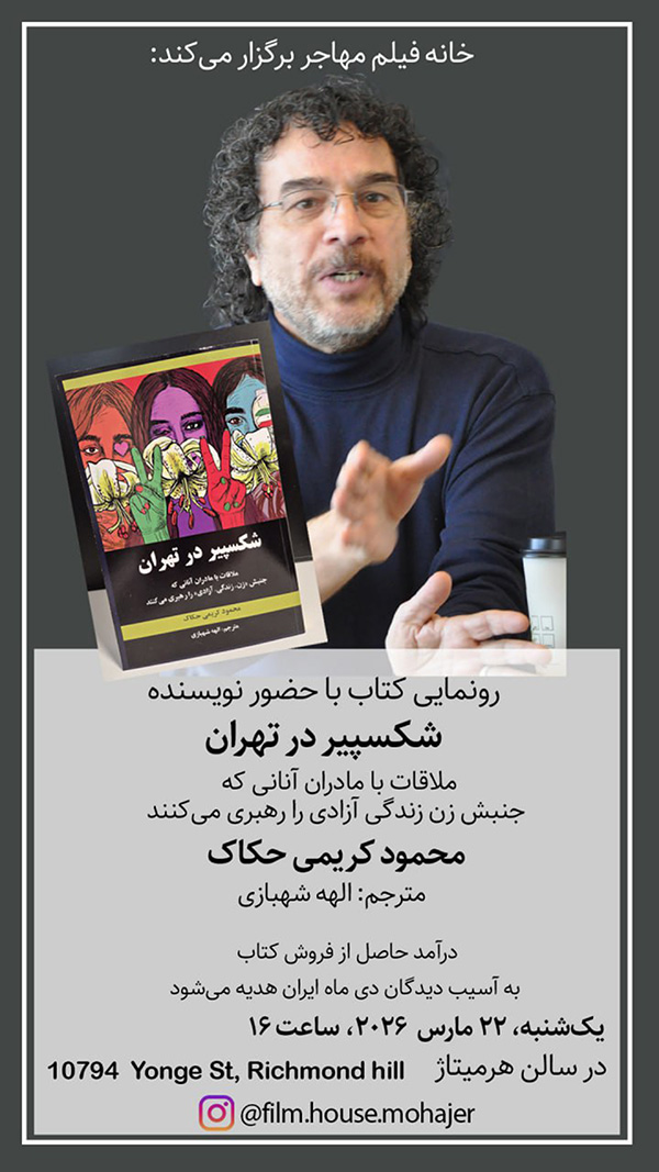 کریمی حکاک و الهه شهبازی برای رونمایی این کتاب در تورنتو و ونکوور حاضر خواهند بود.